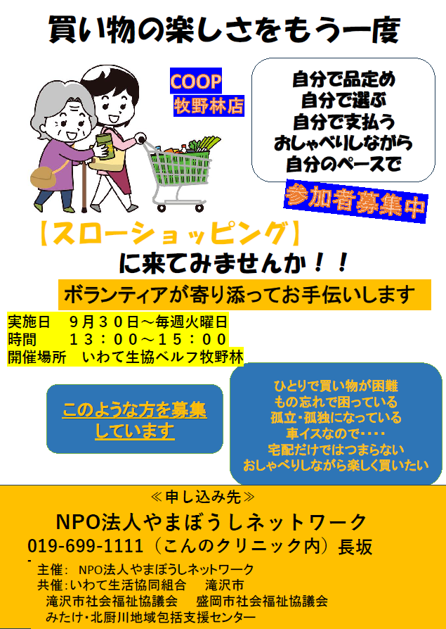 岩手県地域包括ケア情報誌「ちいきで包む」でスローショッピングが特集されました。
